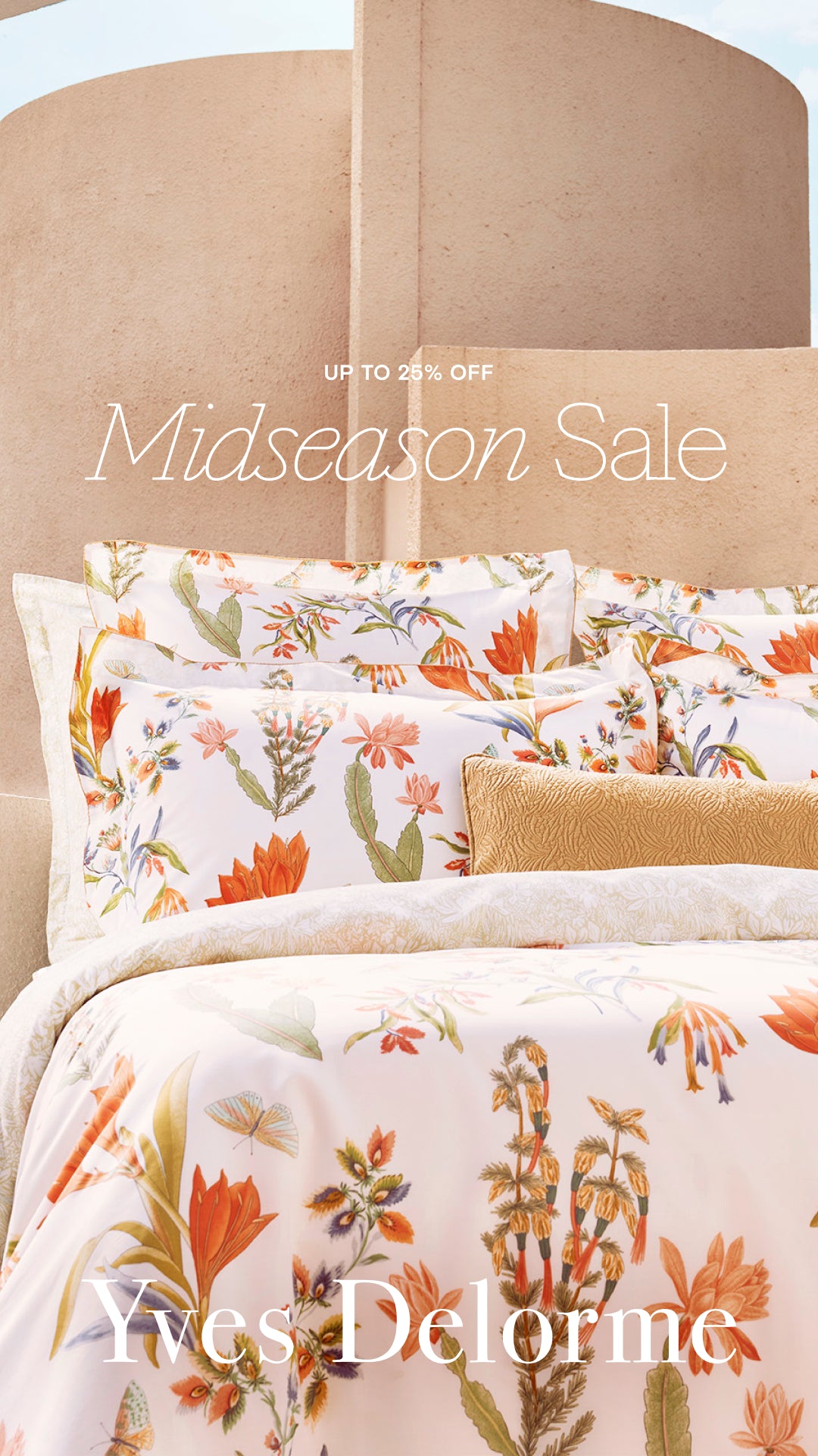 Where classic French craft meets lyrical calm — Yves Delorme’s Villa pattern evokes the serene geometry of sunlit facades and quiet courtyards, turning every room into a canvas of gentle elegance awash in seasonal light.