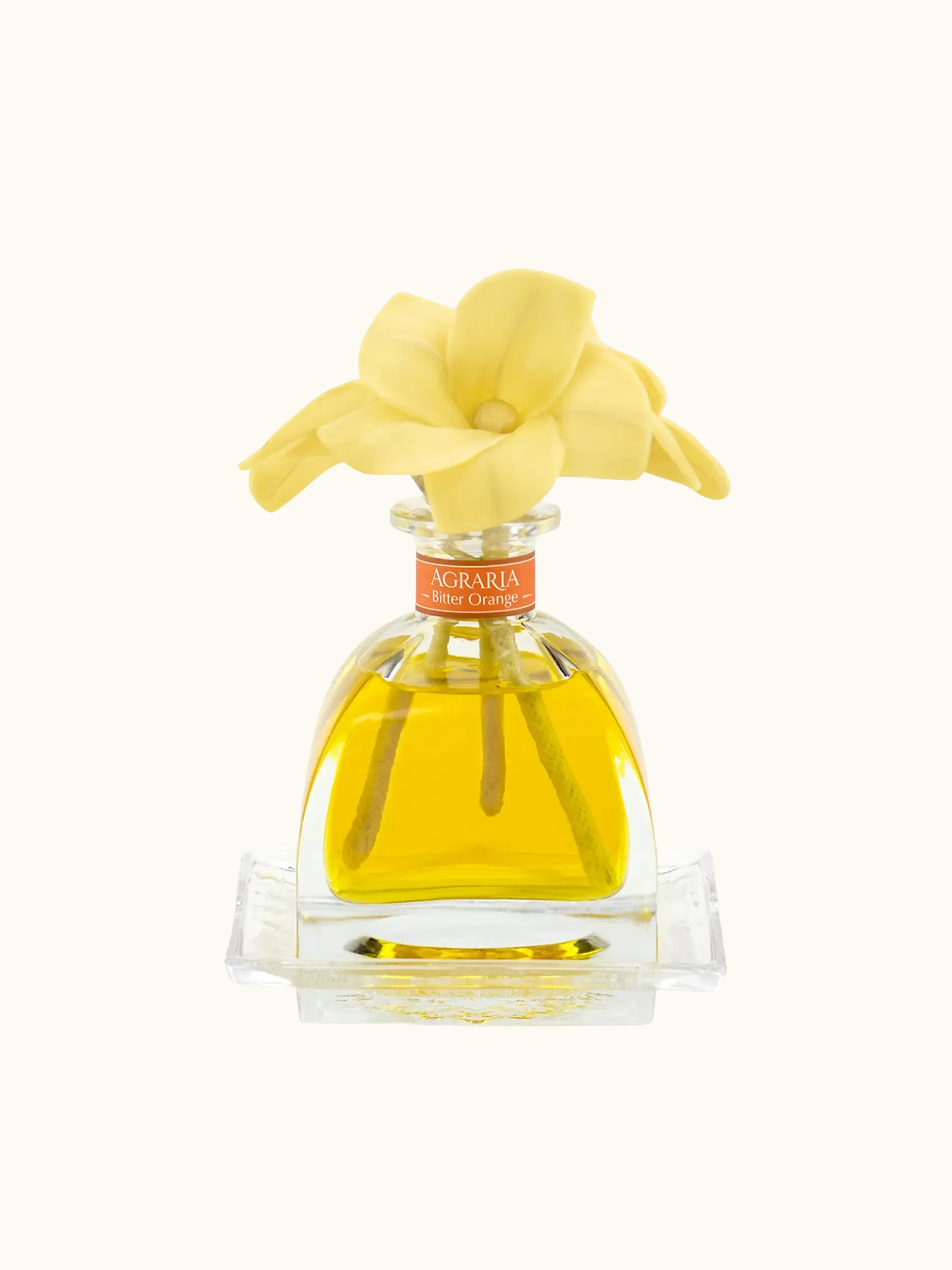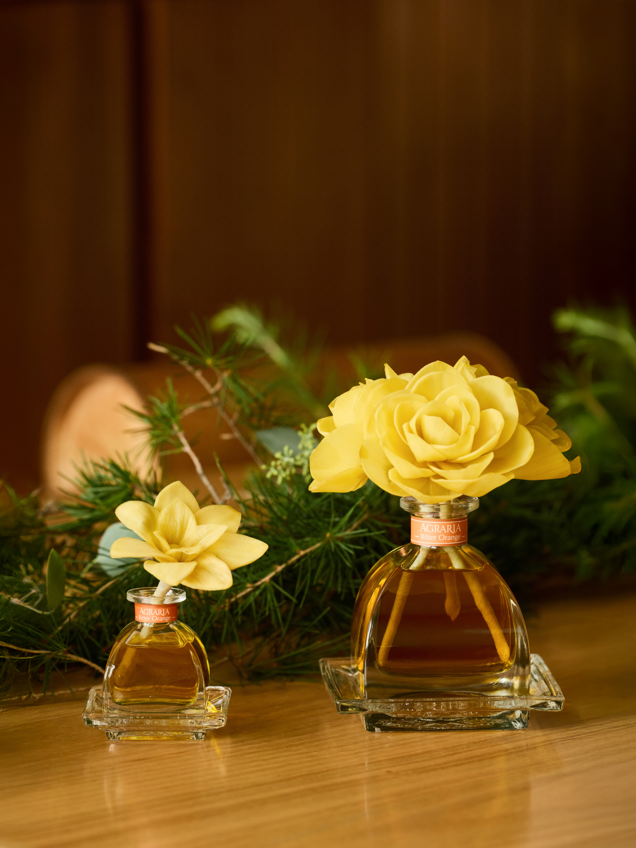 Agraria diffusers are blended using the highest quality essential and natural oils. Fragrances are true extracts from genuine botanicals and source ingredients. Fragrance can be diffused through the petals of hand-made sola flowers that come to life with color as the oil is drawn up the cotton wick. Come with 3 beautiful Camellias that are packed with layers of elegant petals, drawing up and transferring even more oil, color, and fragrance.